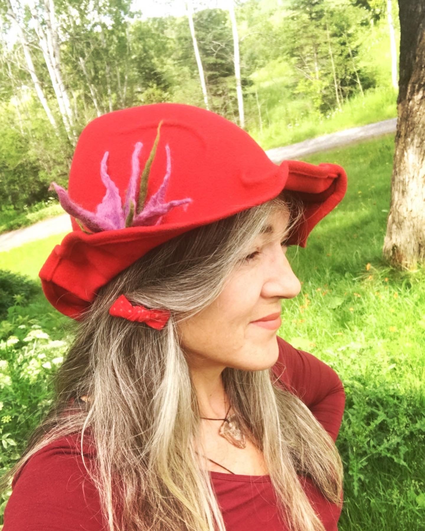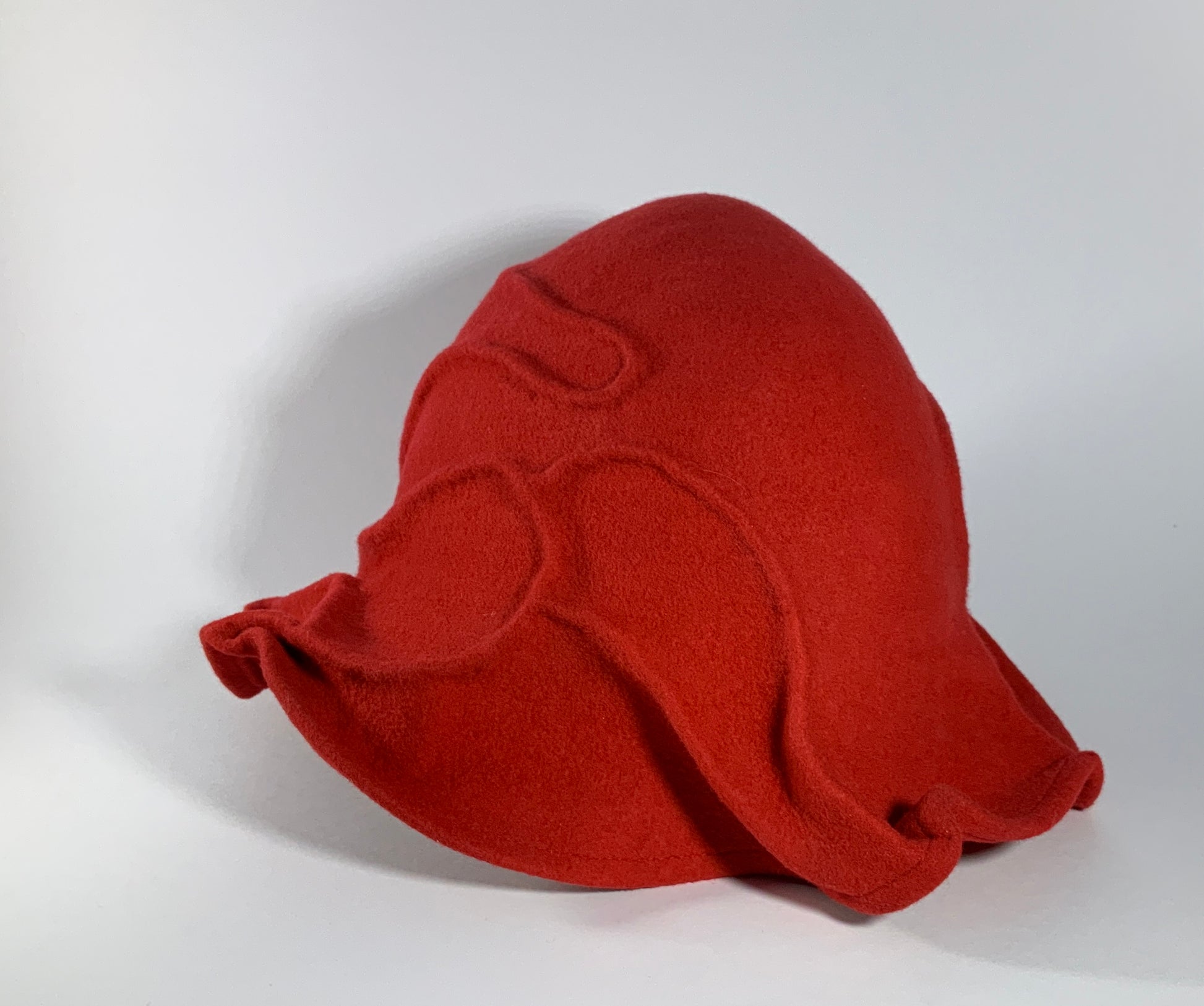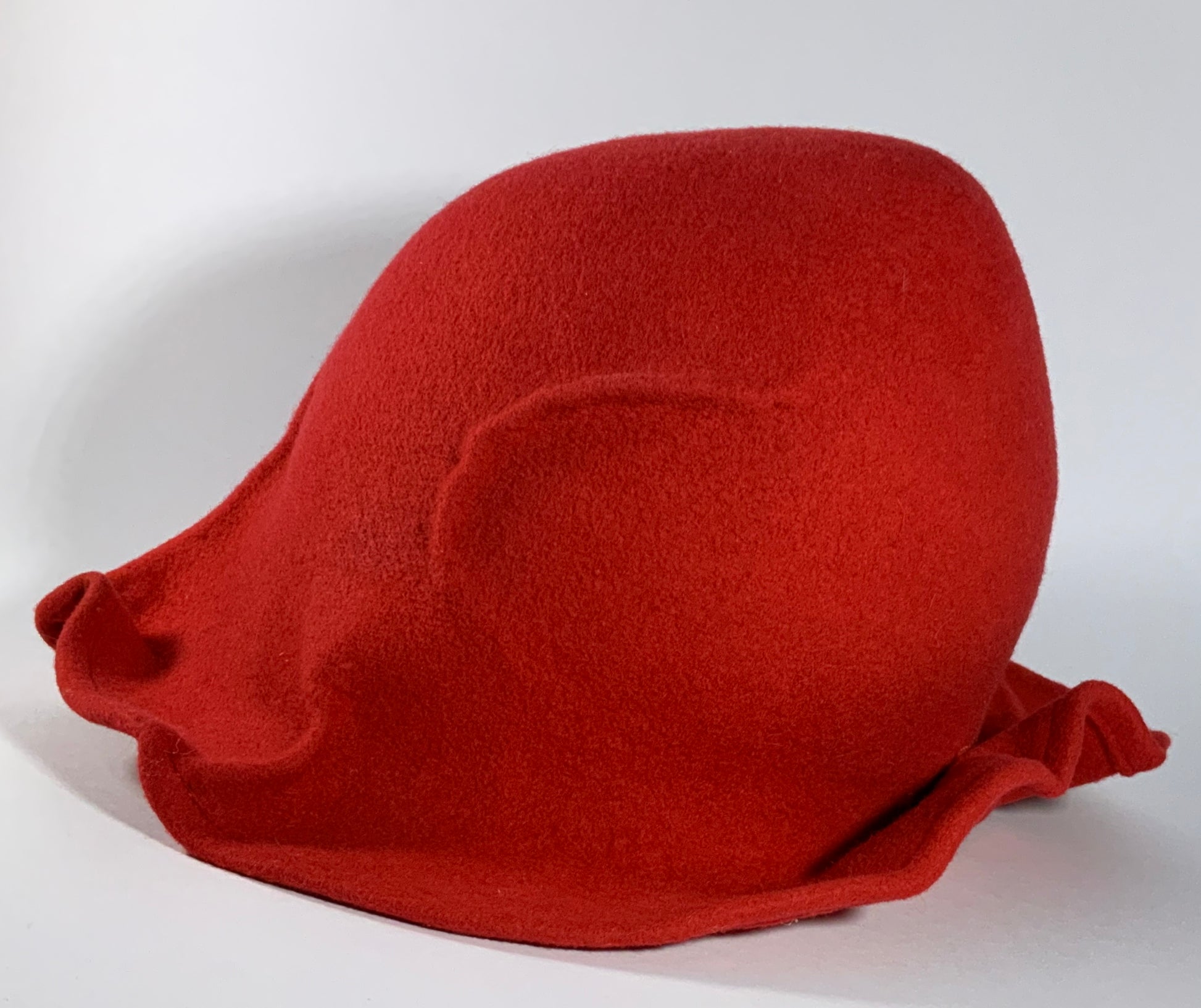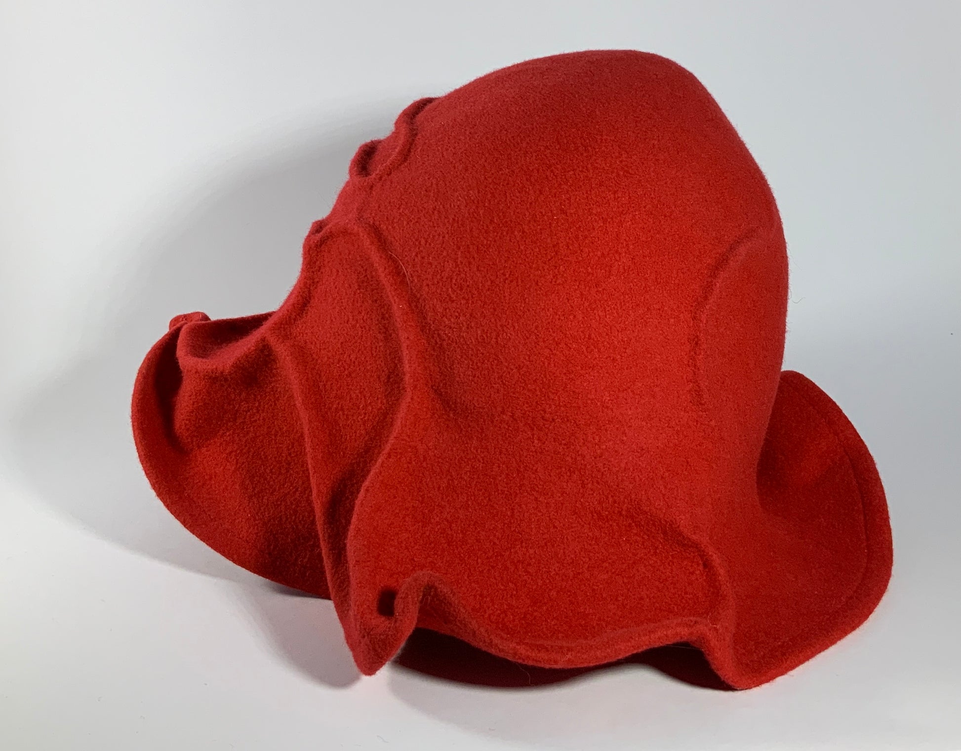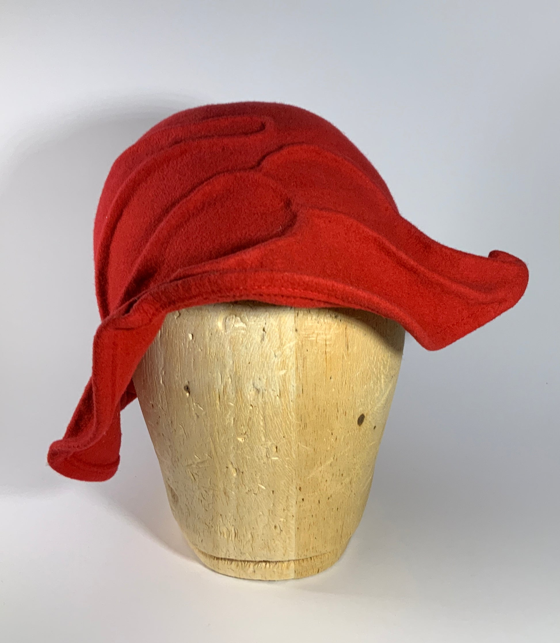Chapeau de feutre fantaisiste rouge, valorisé, convient à un tour de tête de 22 1/2 pouces(moyen). Se porte de tous les côtés. La fleur n’est pas incluse.