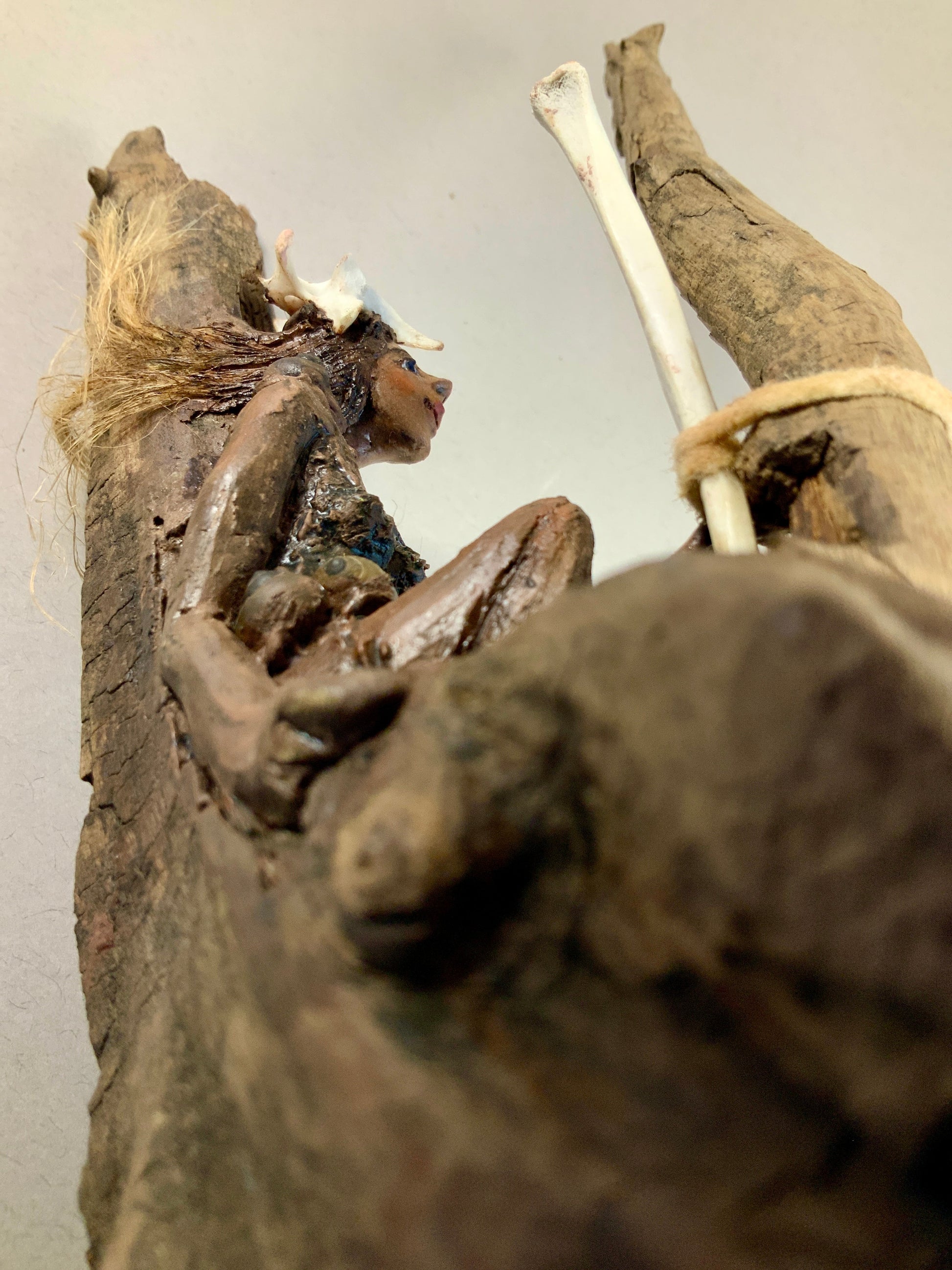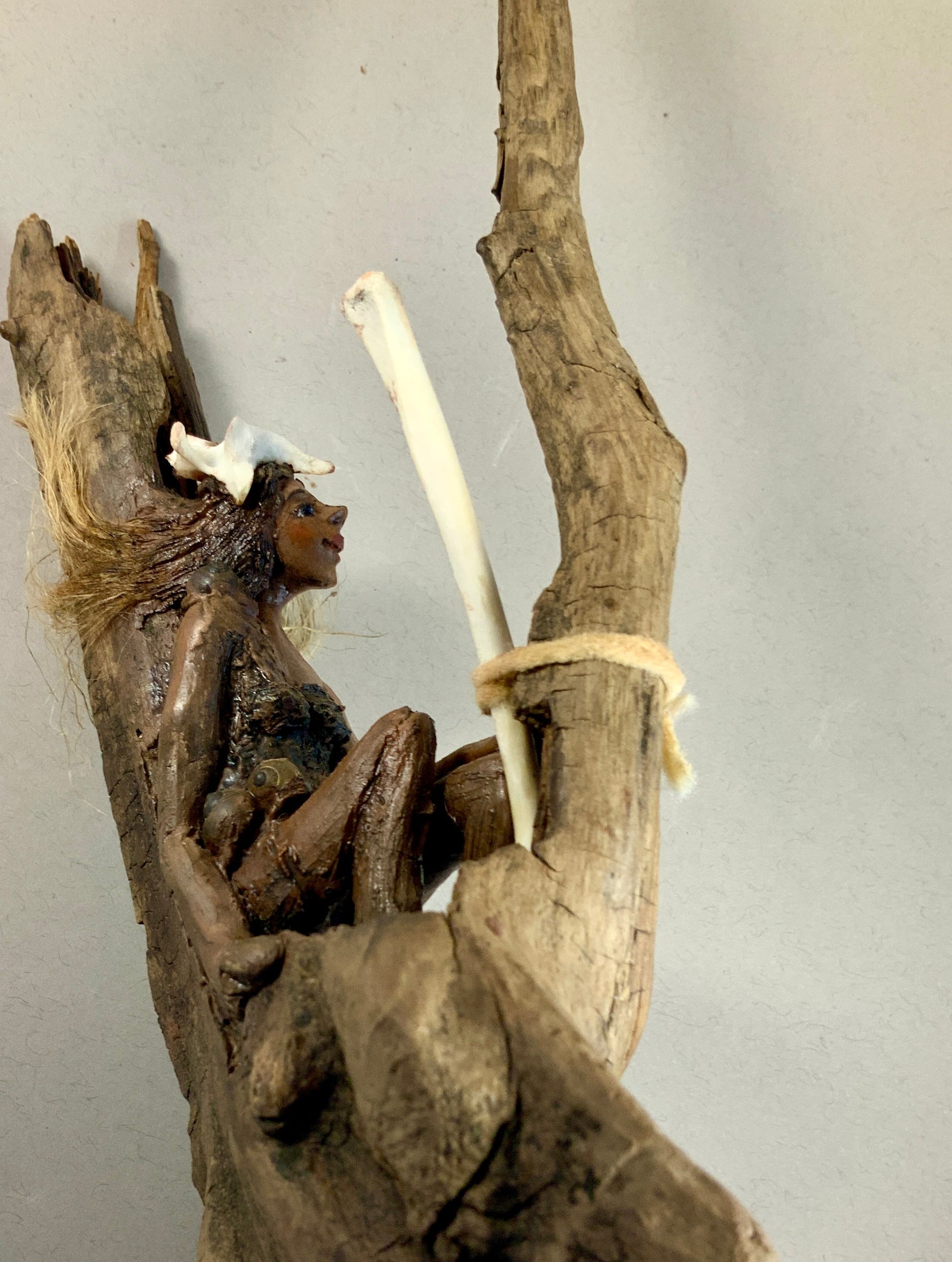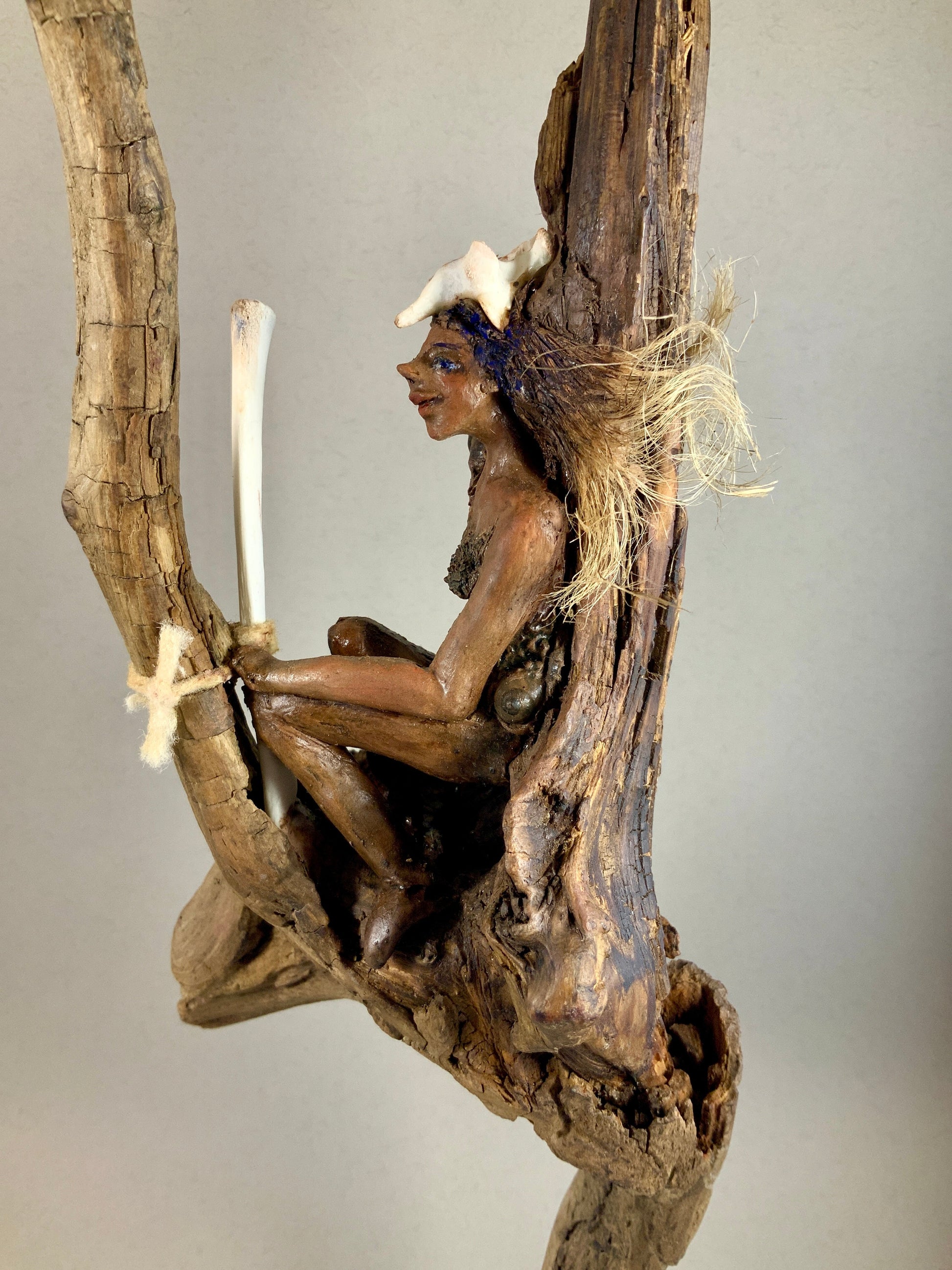Argile-papier, bois de grève, corde de jute, os et coquillages, huile)