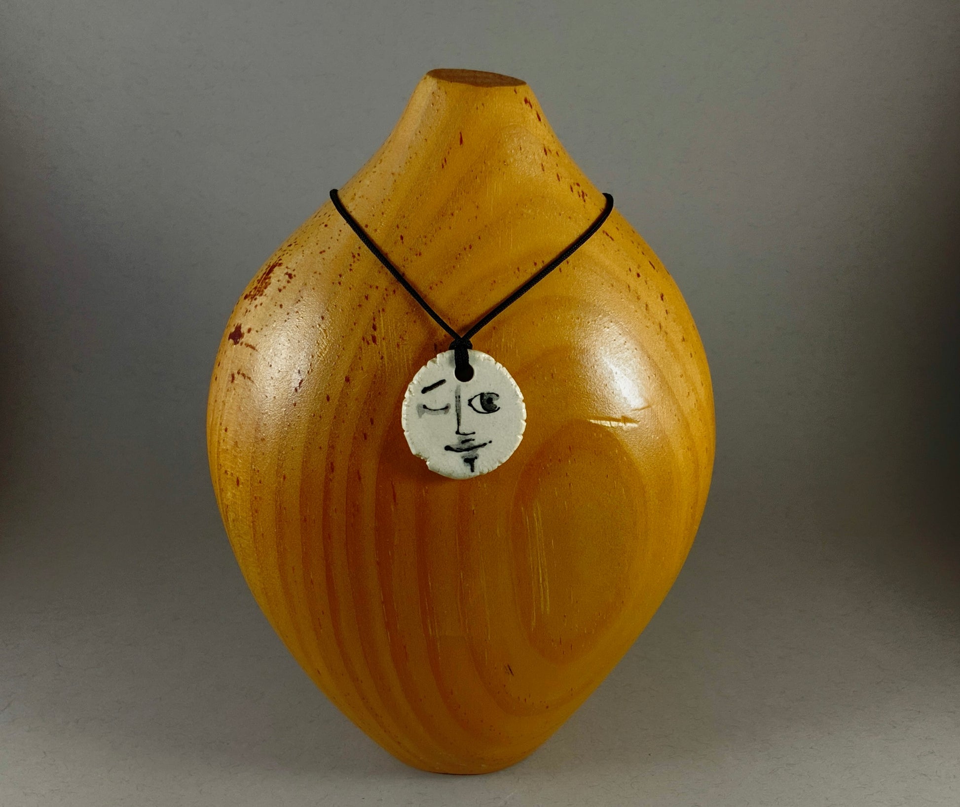 Pastille de céramique montée sur une corde asiatique noire, noeuds à glissière.