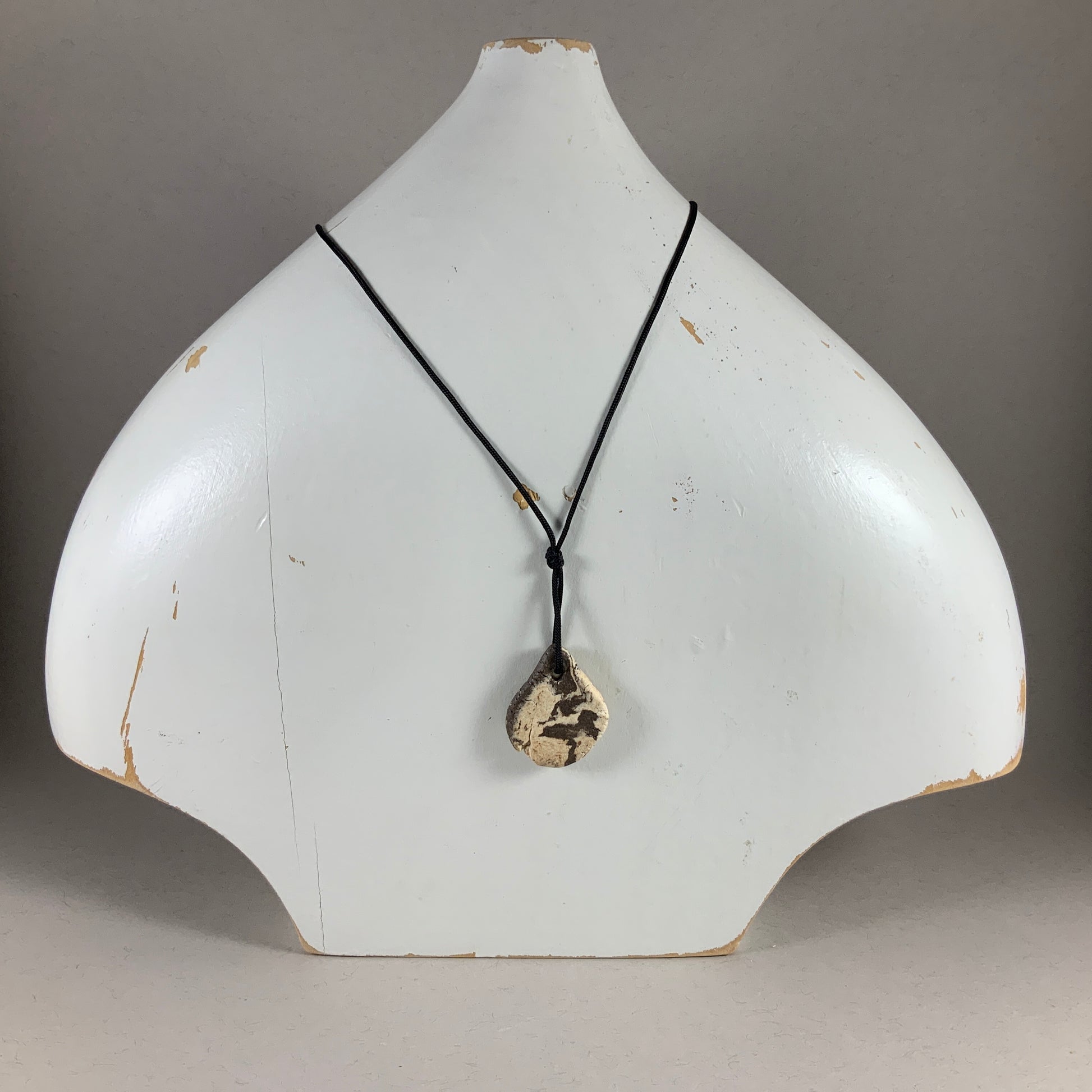 Pastille de céramique montée sur une corde asiatique noire, noeuds à glissière.
