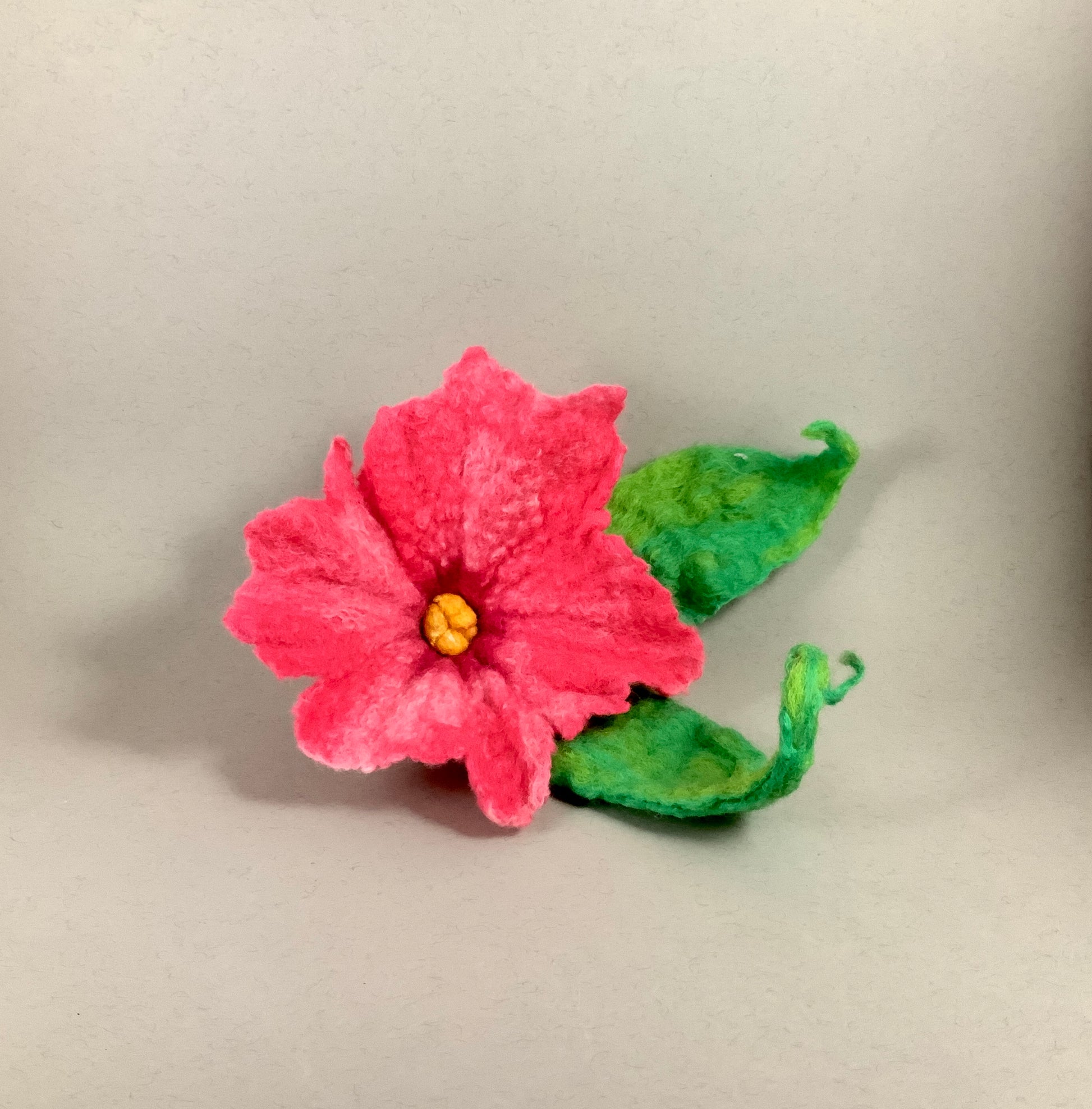 Fleur feutrée avec épingle pour à la boutonnière, sur un foulard, un chapeau, un sac…laine de mérinos.