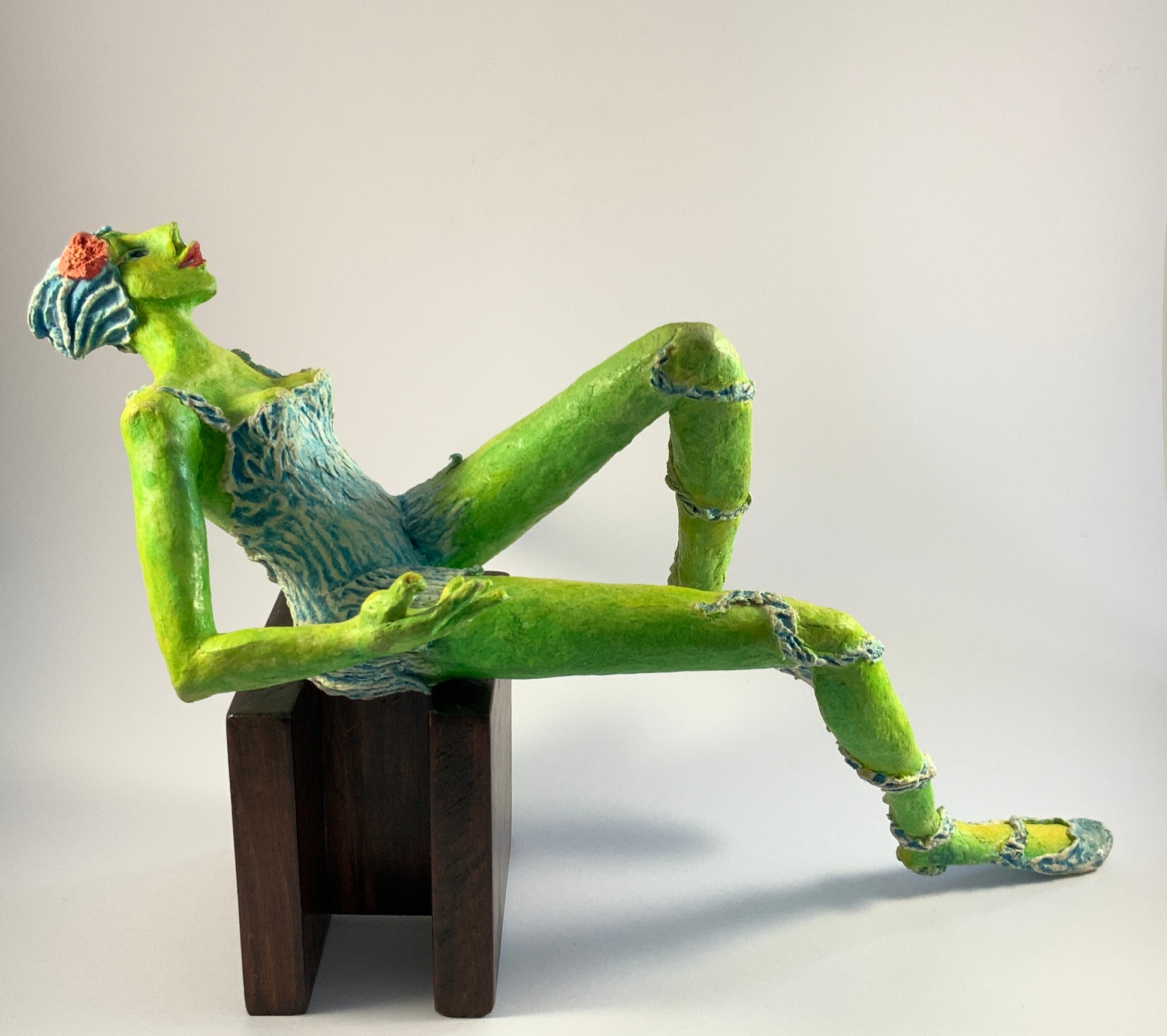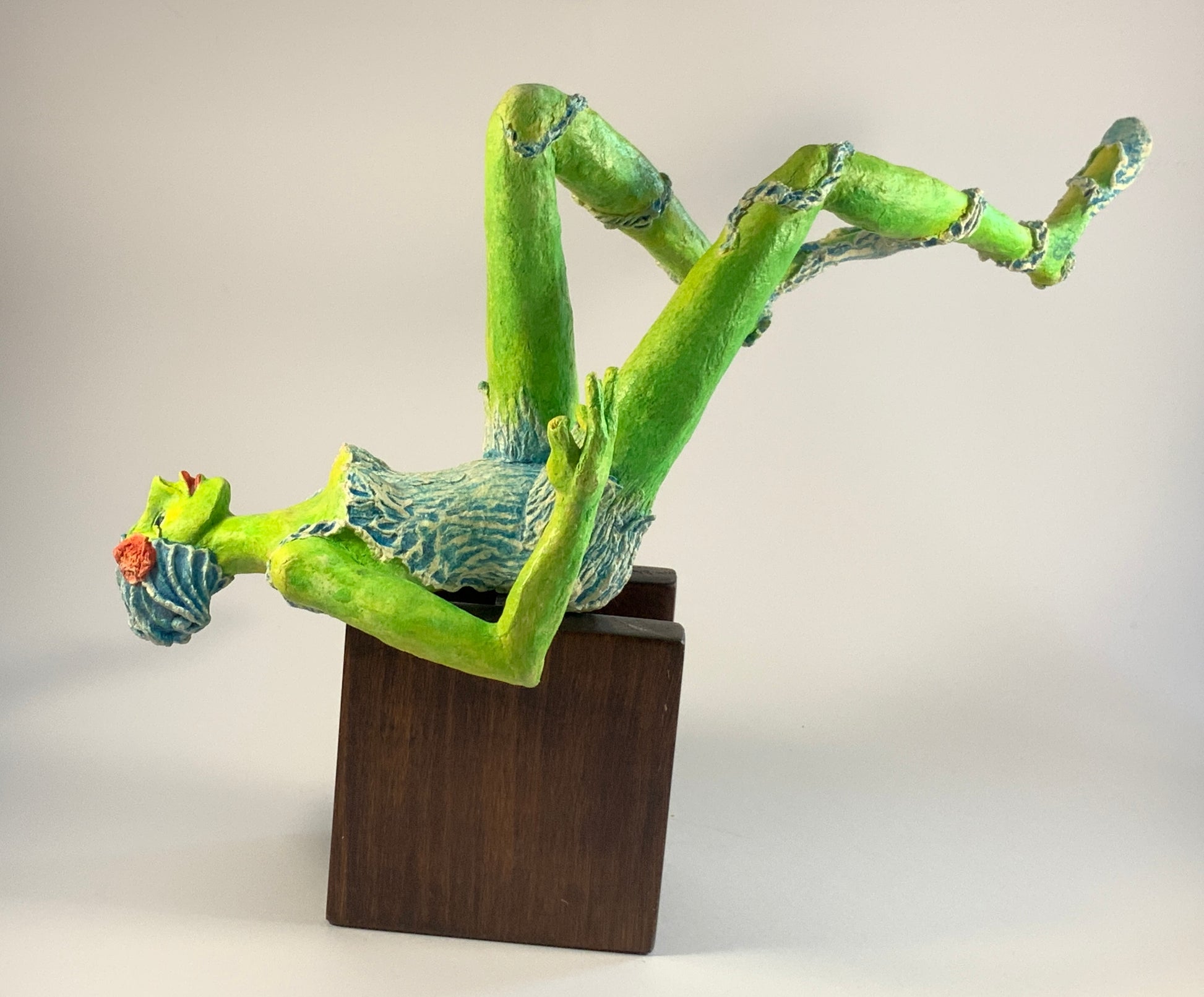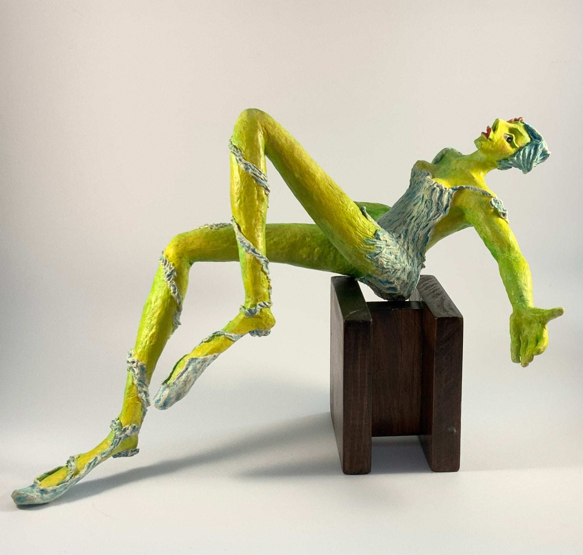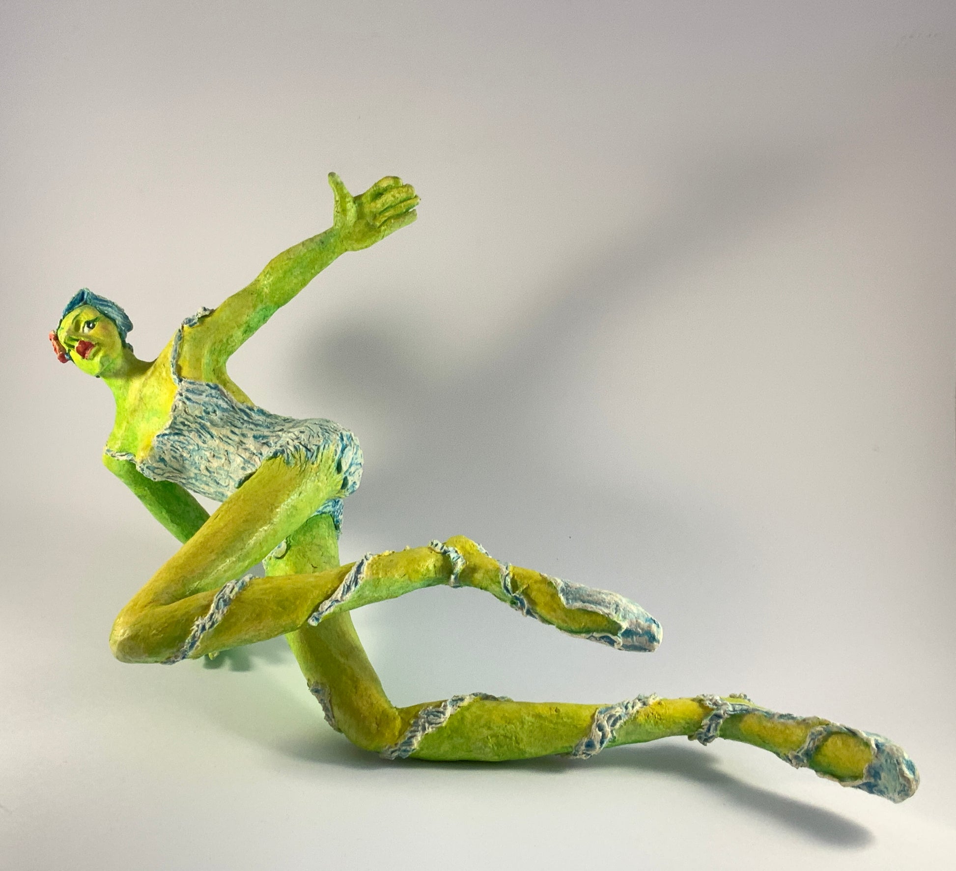 Stabile en papier, l’œuvre a plus d’une position, on peut la placer sur une tablette ou directement sur une surface.