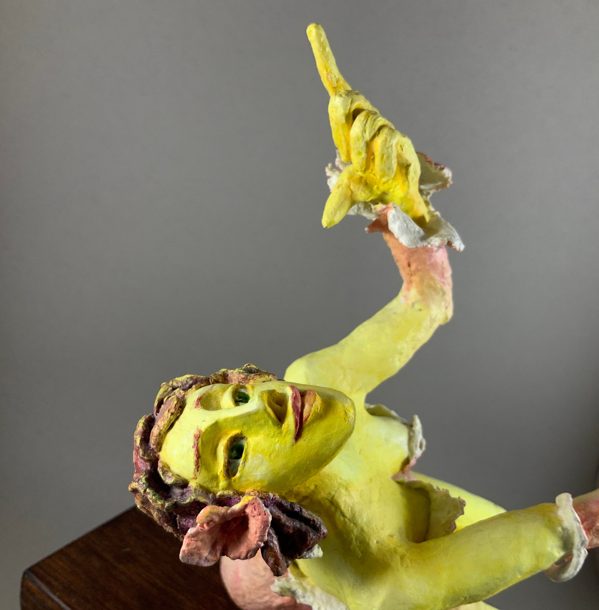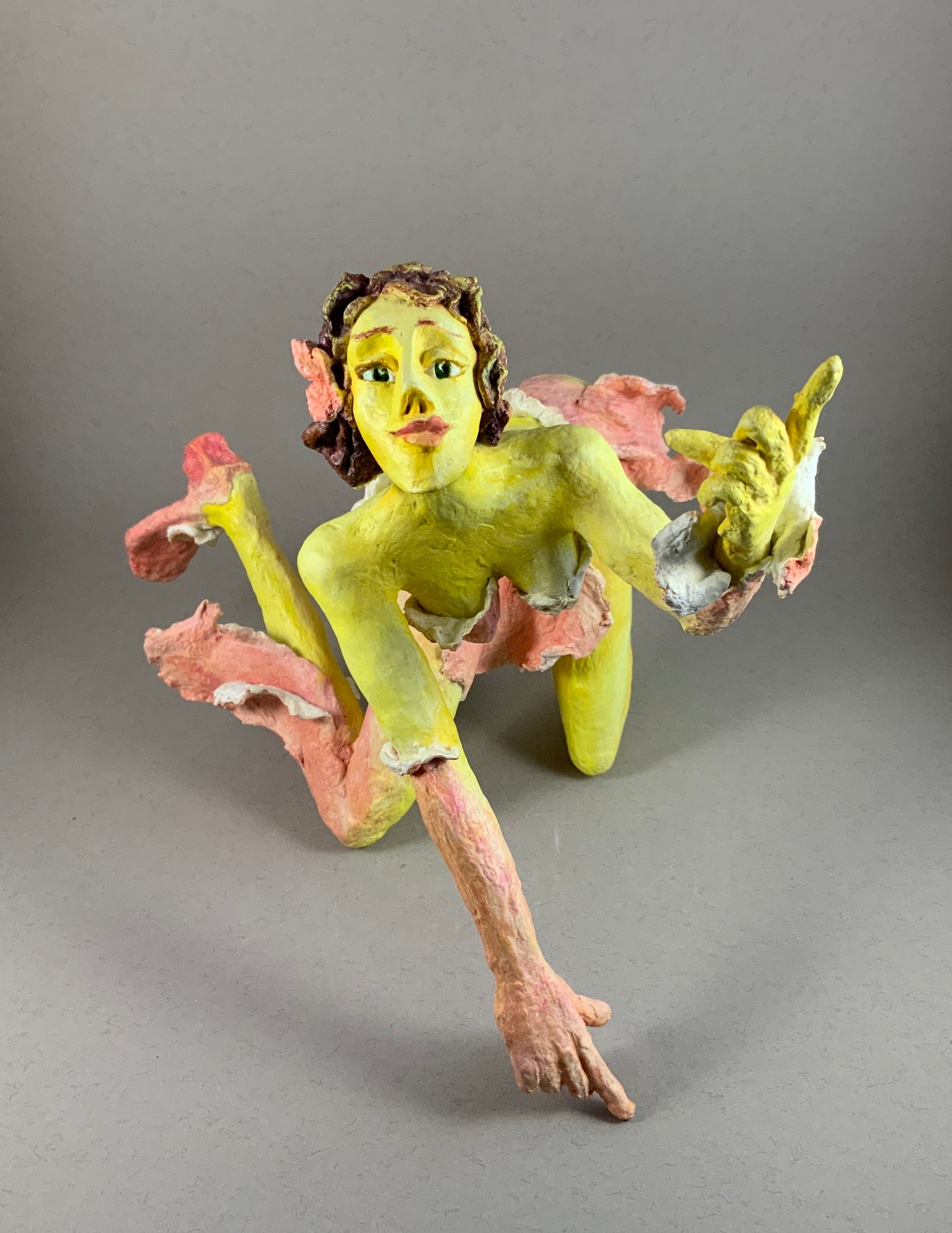 Stabile en papier, l’œuvre a plus d’une position, on peut la placer sur une tablette ou directement sur une surface.