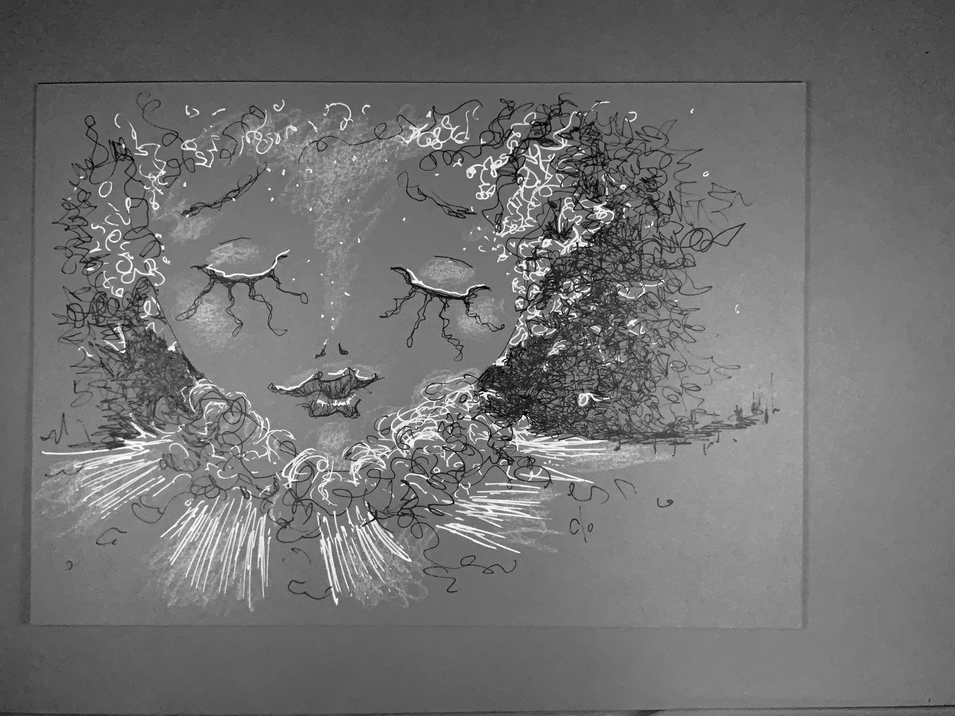 Petit dessin aux crayons sur carton gris de la série des petits gris
