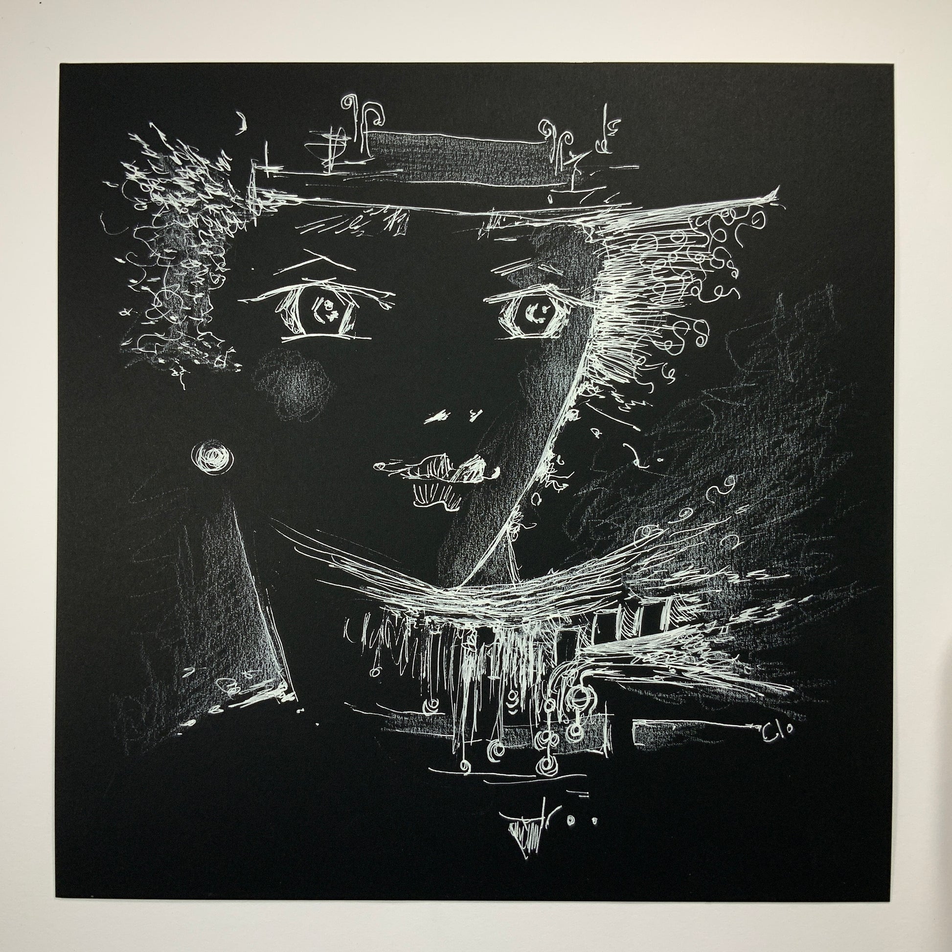 Petit dessin aux crayons sur carton noir de la série Les lumineuses.