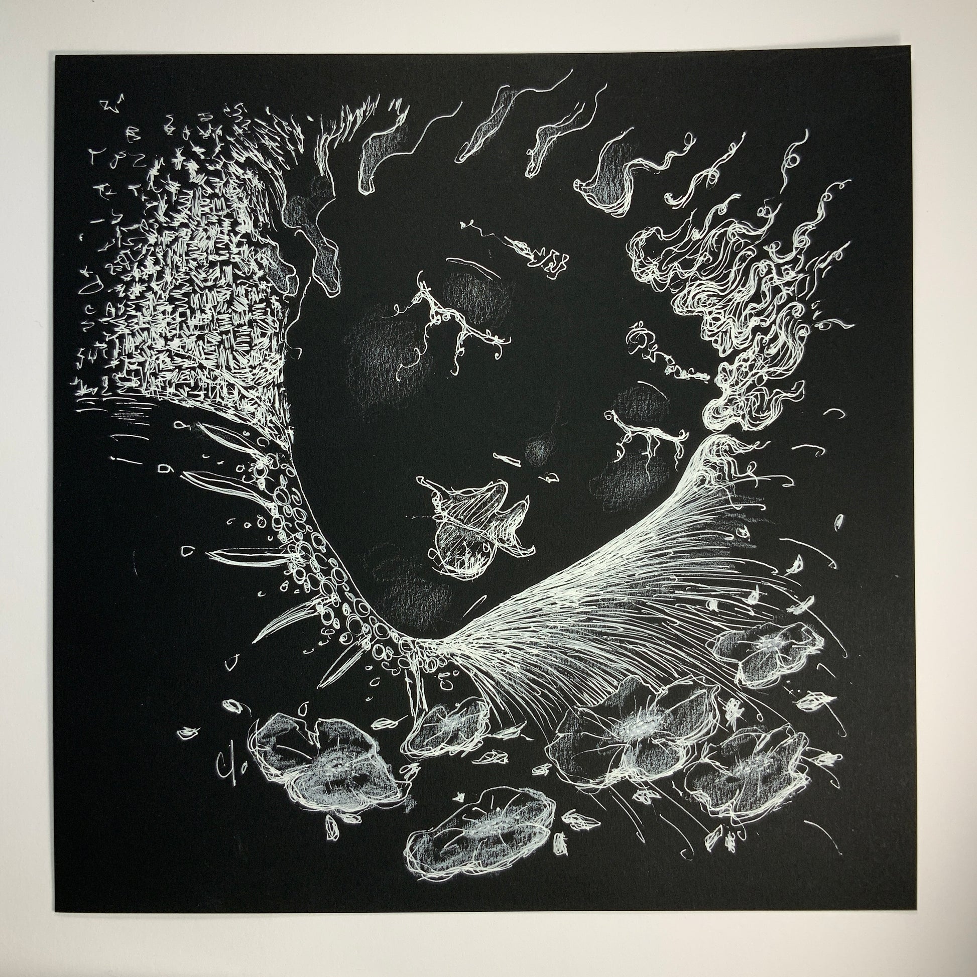 Petit dessin aux crayons sur carton noir de la série Les lumineuses.