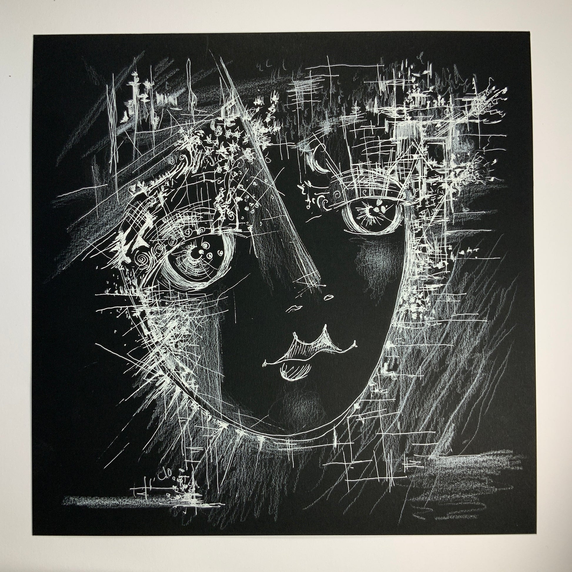 Petit dessin aux crayons sur carton noir de la série Les lumineuses.