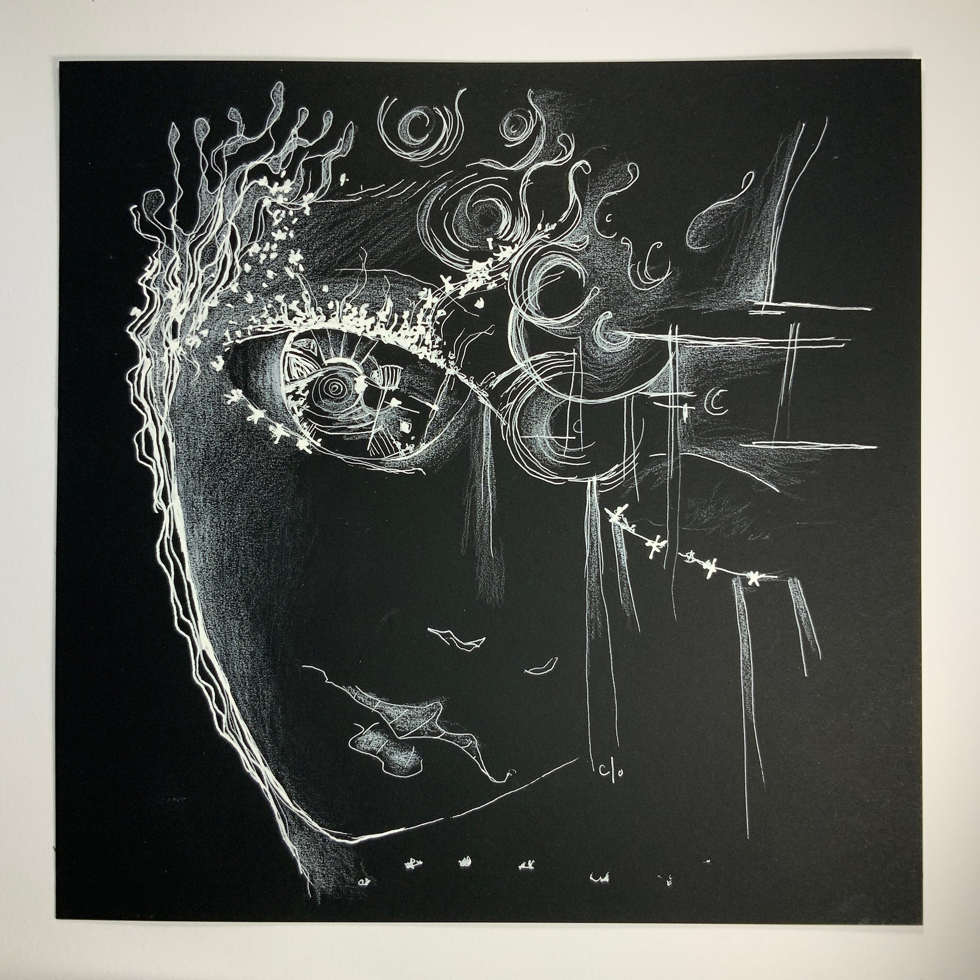 Petit dessin aux crayons sur carton noir de la série Les lumineuses.